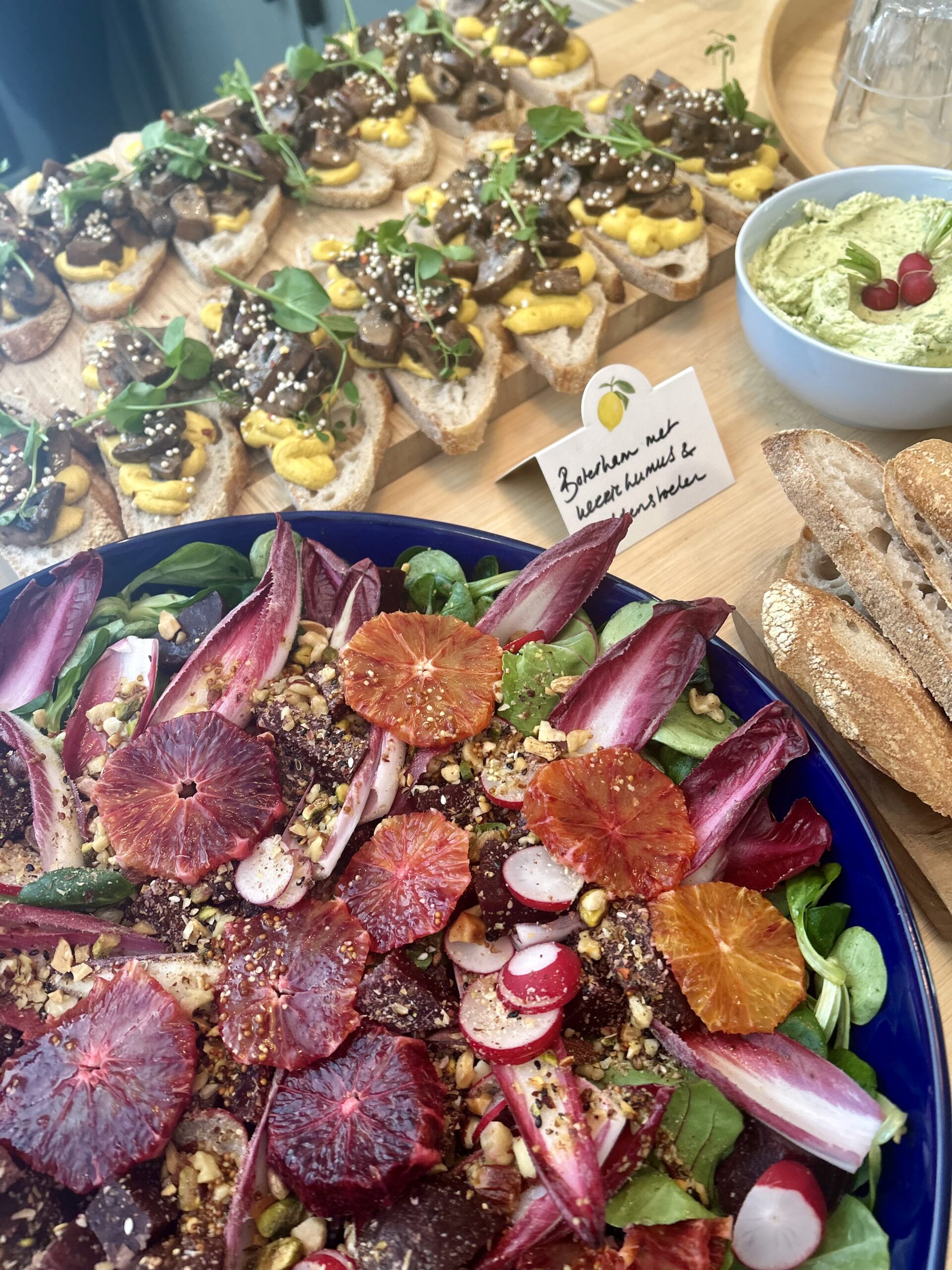 Frans zuurdesembrood met smeersels bijv. huisgemaakte pesto of hummus - € 2,50 p.p.